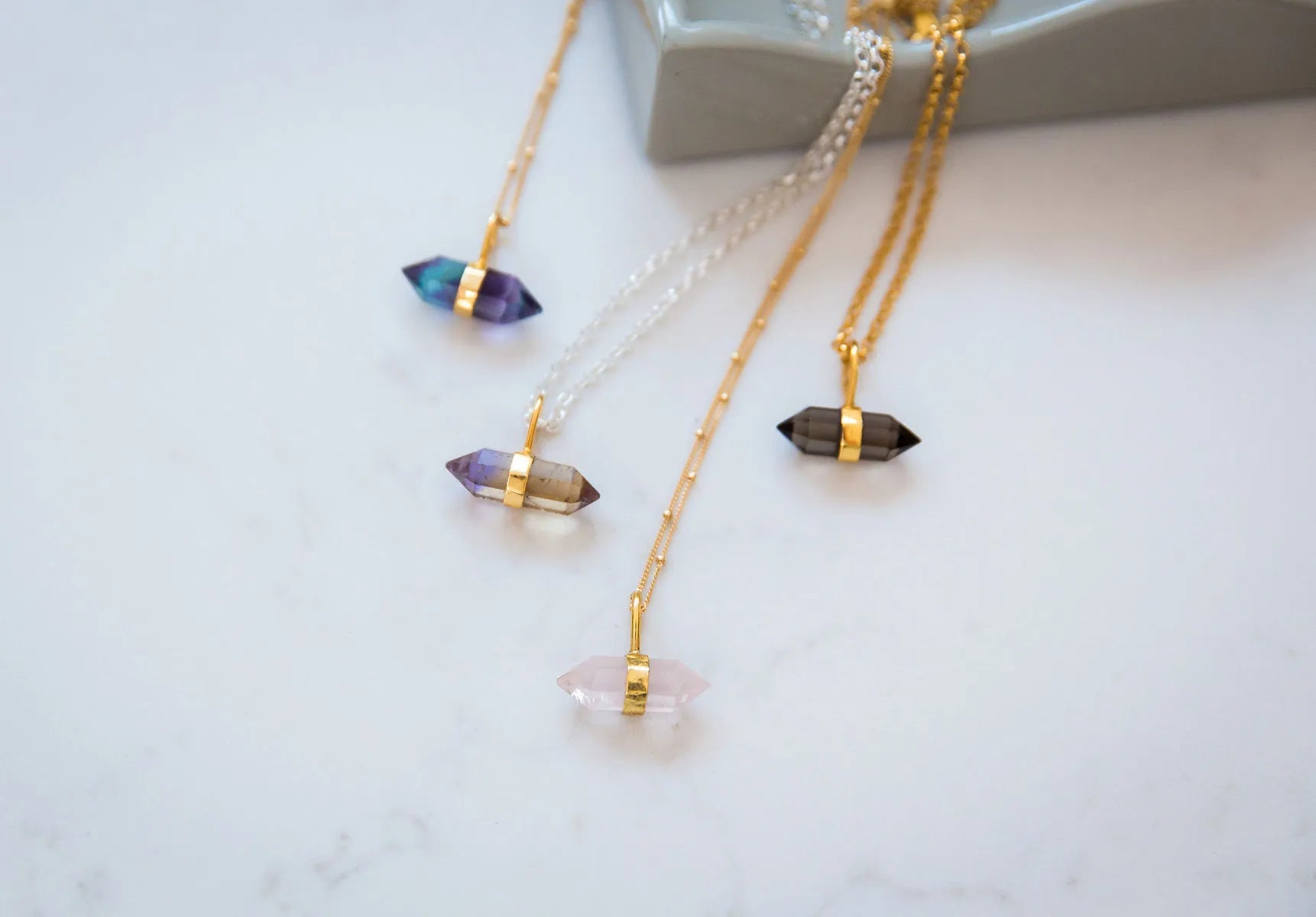 Available in an ever growing collection of stones including Smoky Quartz, Labradorite, Rose quartz & Mother of Pearl, read more about the unique properties of each stone.