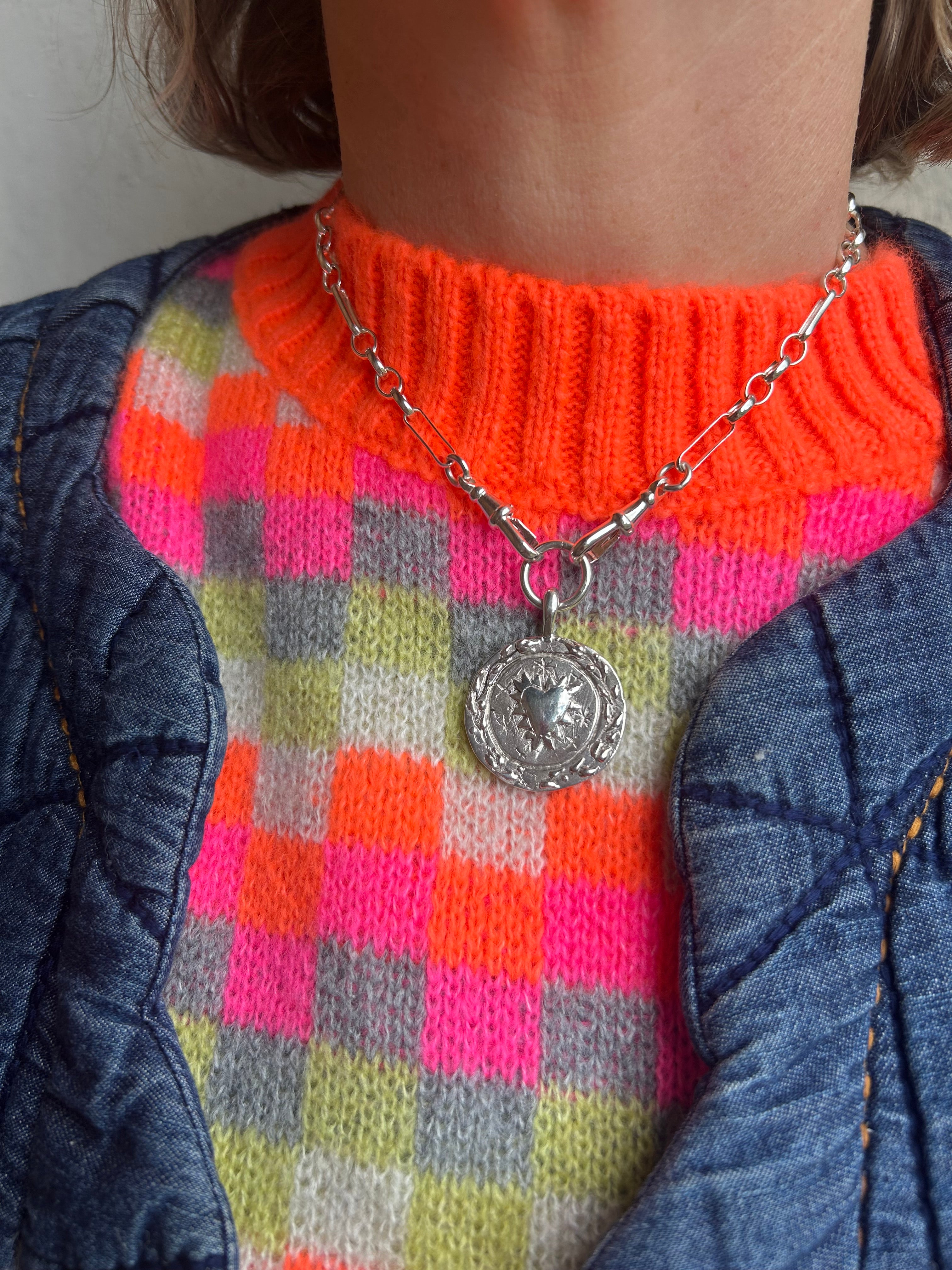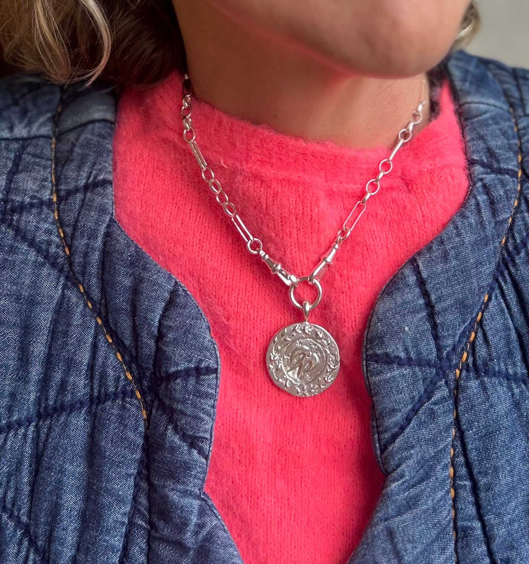 The pendant can be taken off the Albert clasps meaning you can wear the chain on its own or wear the pendant on another chain, you can also make the chain shorter if you so wish or wear the chains as a bracelet. We adore the heirloom quality, versatility and originality of this unique necklace designed by Laura with her dear friend from Art School artist Kate Lowe.