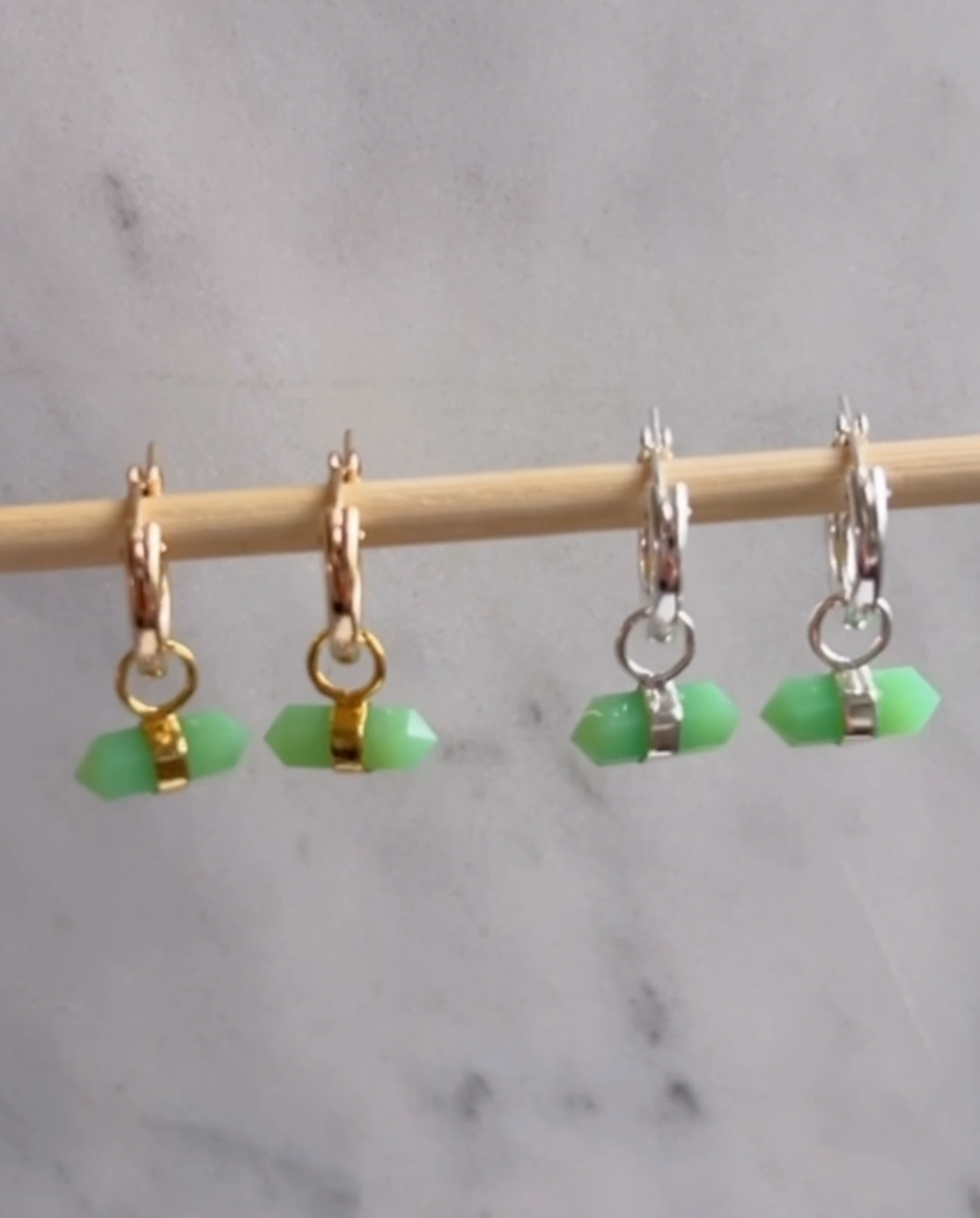 Our Hand-Cut Mini Balance Rock Hoop Earrings are truly divine. Each pair features beautifully faceted, hand-cut stones, carefully set onto HR hoops. No two stones are ever the same, making every pair uniquely yours. Available in a lovely mix of semi precious stones