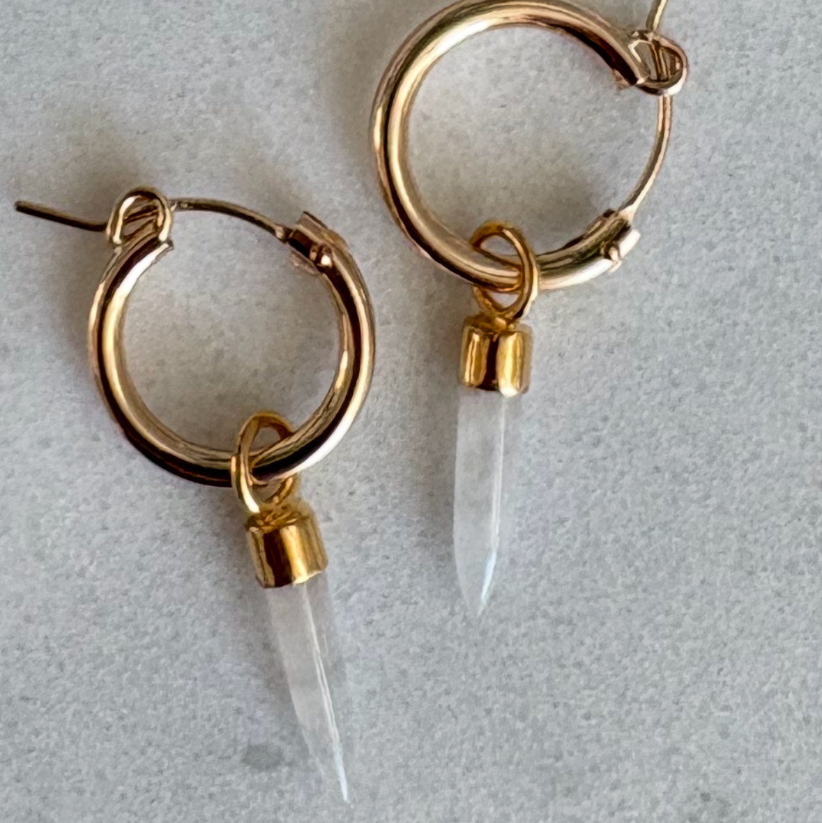 Our best-selling Spike Earrings are endlessly versatile, featuring yellow gold hoops with interchangeable semi-precious stone spike charms. Choose from Green Chrysoprase, Rose Quartz, Pink Chalcedony, Blue Chalcedony, Turquoise, Labradorite, Carnelian, or Moonstone.