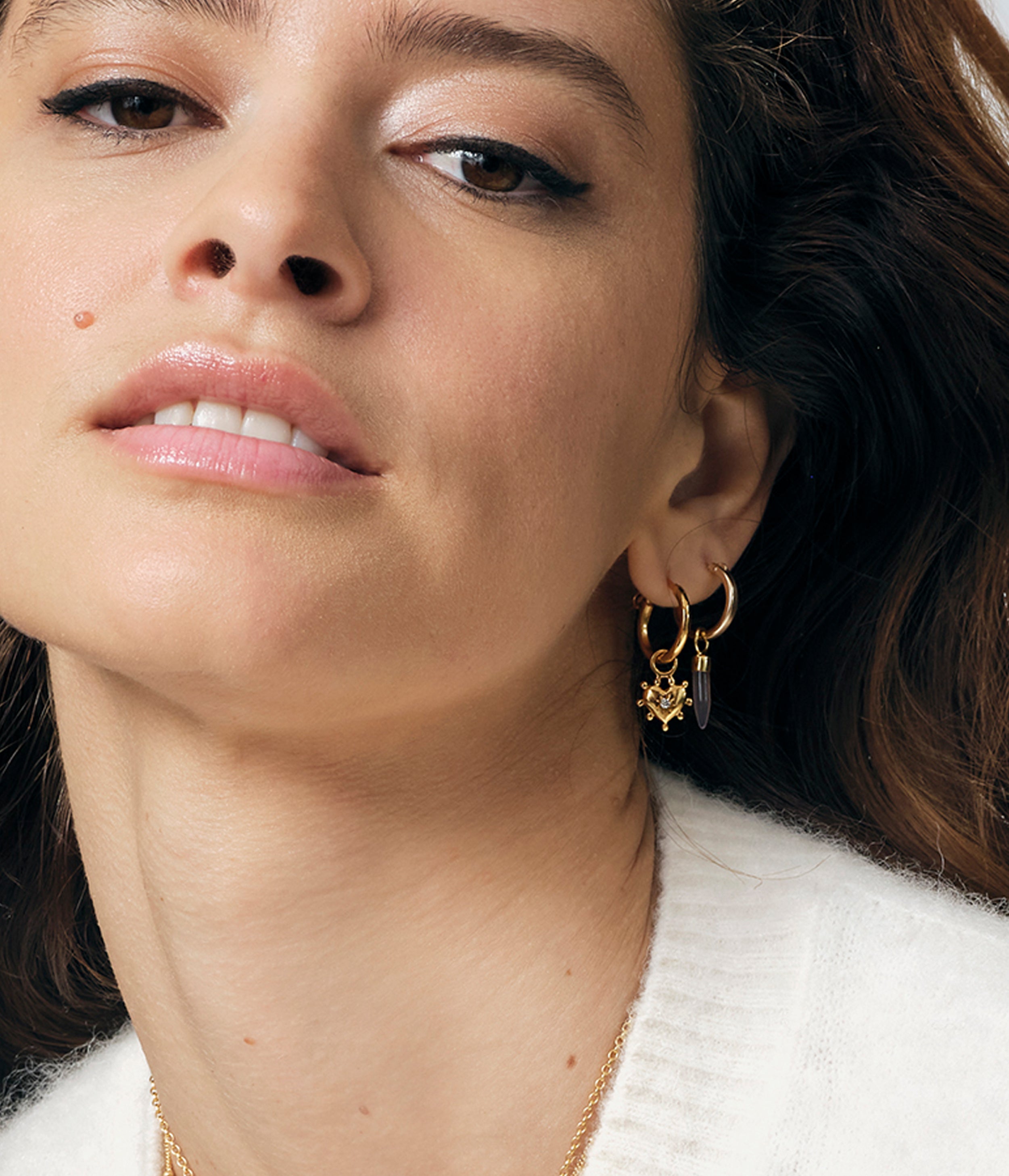 Our gorgeous best selling spike earrings are super easy to wear- you will love them! Available in either Green Chrysophrase, Rose Quartz, Pink chalcedony, Blue Chalcedony Turquoise, Labradorite or Carnelien on yellow gold hoops. Spikes are interchangeable, so you can have one pair and simply buy additional spikes to update your hoops!
