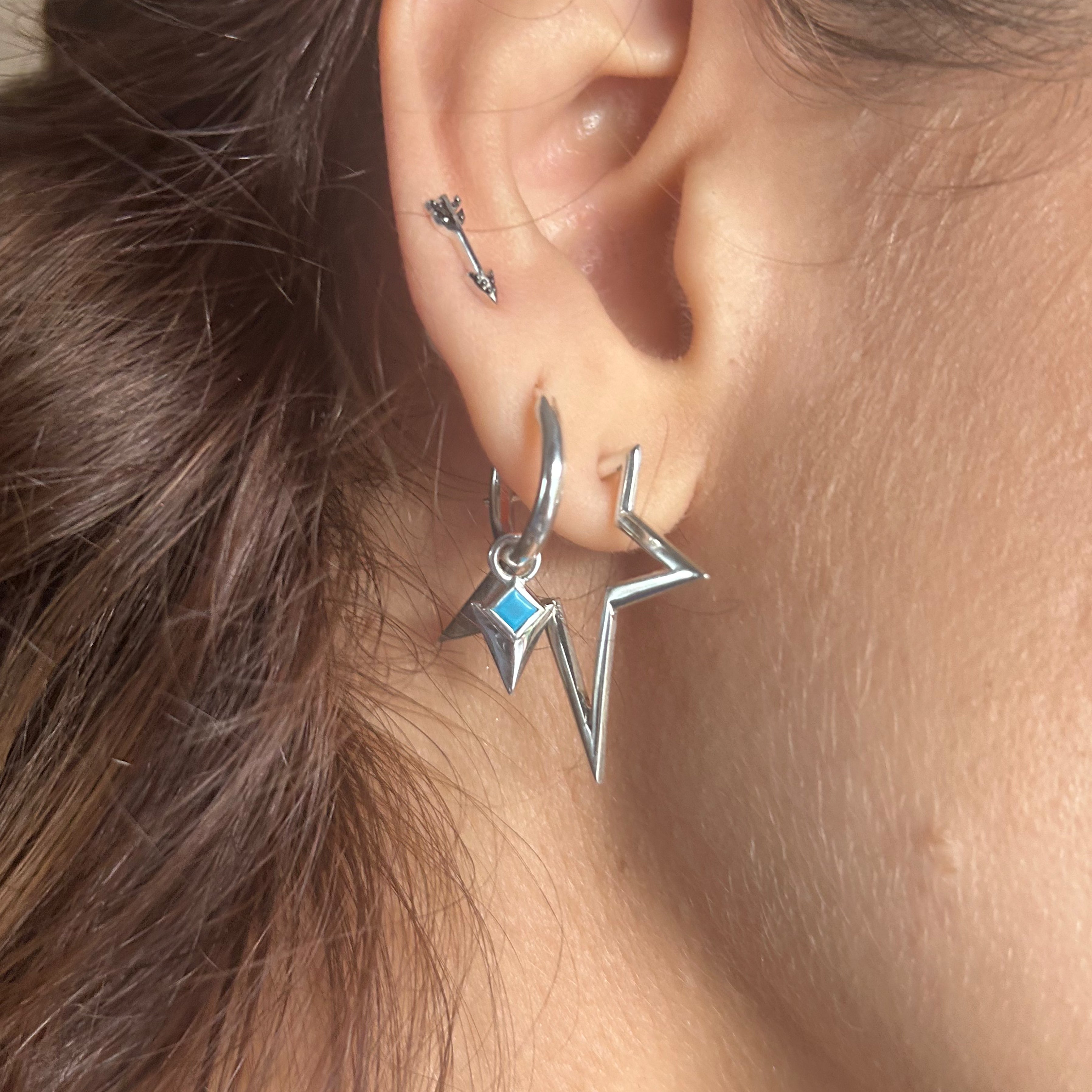 Newest addition to our hoops is our Athena earring- pretty sterling silver with turquoise stone set or gold with lapis lazuli stone set, gorgeously easy to wear and to mix and match with your other HR charms. Athena is the Goddess of wisdom, skills and handicraft